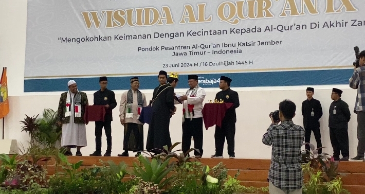 Pondok Pesantren Alquran Ibnu Katsir Jember menggelar acara wisuda untuk 41 santri hafal Al-Quran pada Minggu, 23 Juni 2024. Meski sudah wisuda, para santri harus menjalani pengujian kompetensi dan pengabdian ke masyarakat selama satu tahun ke depan.