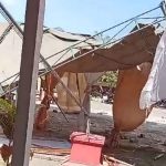 Sebuah tenda acara lepas pisah siswa kelas VI SDN Grenden 2, Kecamatan Puger, diterjang angin kencang, Kamis siang kemarin. Atas...