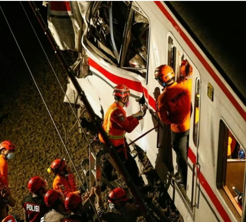 Benturan keras tidak terhindarkan hingga menyebabkan kerusakan parah pada gerbong belakang.